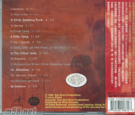 1 Solzhee(傳說(shuō)中的小孩) 2 Nay a Na 3 Stick Gambling Rock(小石頭) 4 Spring(春天) 5 Crow Song(烏鴉之歌) 6 Pelly Song(培里之歌) 7 As i Speak(當(dāng)我說(shuō)) 8 KEHLONN:at the Foot of the Bed(床前) 9 The other Side(彼方) 10 Beware(警醒) 11 McQueston River Stick Gambling Song(麥可昆士頓河畔 12 Homeless(流浪者) 13 Grouse Dance(松雞之舞) 14 Nendaa-go back(回顧) 15 Solzhee(傳說(shuō)中的小孩)