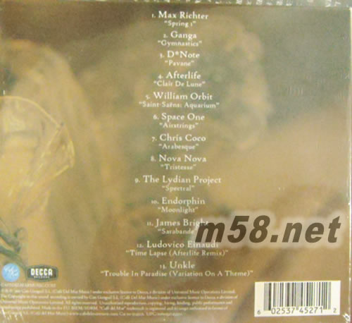 Classical 跳舞音樂名牌 古典篇音樂新風格(m58.net) 1980年初,Del Mar咖啡館建成于依比薩島海岸邊,其極具特色的裝潢建筑與令人神往的日落馬上吸引了許多游客. 伴隨著優(yōu)美景致應運而生的音樂文化范圍涵蓋了爵士、藍調(diào)、古典、電子等, 自此日落和音樂便成為Cafe Del Mar的一部分. 1980年代末,以錄音帶方式發(fā)表的音樂合輯開始發(fā)售;1994年,英國電子音樂廠牌React正式發(fā)行以Cafe Del Mar音樂為主題的第一張CD,收錄了如Underworld A Man Called Adam等知名電子音樂藝人的作品.隨著這張合輯的成功,1995、1996年夏季又推出了Cafe Del Mar Vol.2和Vol.3. 商業(yè)上的成功使得英國寶麗金公司再度于1997 和1998年分別推出了Cafe Del Mar Vol.4和Vol.5,而這5張合輯共約120萬張銷量.今天Cafe'Del Mar除了是Ibiza的代表外,同時也是美麗日落的代名詞,如今更變成了一種音樂的代名詞,甚至為時尚的談論話題。