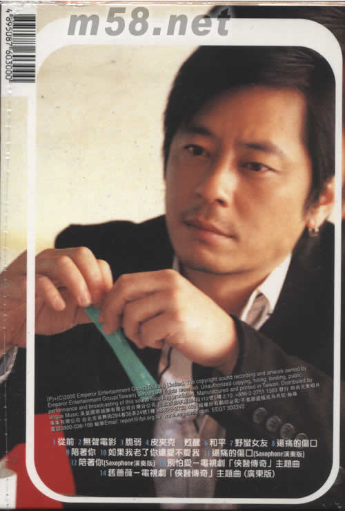 01. 從前 02. 無聲電影 03. 脆弱 04. 皮夾克 05. 蘇醒 06. 和平 07. 野蠻女友 08. 還痛的傷口 09. 陪著你 10. 如果我老了你還愛不愛我 11. 還痛的傷口 (Saxophone演奏版) 12. 陪著你(Saxophone 演奏版) 13. 別怕愛 (電視劇”俠醫傳奇”主題曲) 14. 舊薔薇 (電視劇”俠醫傳奇”主題曲)(廣東版)