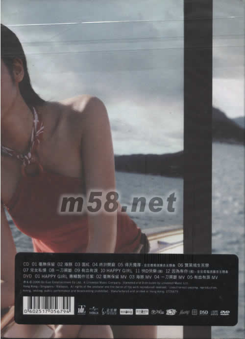 1. : 毫無保留 2. : 海豚 3. : 面紅 4. : 終于開竅 5. : 得天獨厚 [金至尊電視廣告主題曲] 6. : 寶萊塢生死戀 7. : 兒女私情 8. : 一刀兩斷 9. : 有血有淚 10. : Happy Girl 11. : 快D快樂 (國) 12. : 因為有你 (國) [金至尊電視廣告主題曲] DVD 1:HAPPY GIRL 專輯制作花絮 2:毫無保留 MV 3:海豚MV 4:一刀兩斷MV 5:有血有淚MV