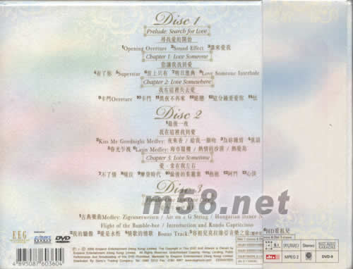 姚玨 莫拉維亞交響樂團(tuán)音樂會卡拉OK DVD (限量珍藏特別版)(m58.net) DVD-9 DVD採用廣播級高清技術(shù)攝制,全碟採用HD 1080I制式拍攝, 全數(shù)碼96KHZ 24BIT錄音, 令聲畫達(dá)至更完美天碟境界! 限量珍藏特別版加送:祖兒莫拉維亞音樂之旅 (20分鐘制作花絮)