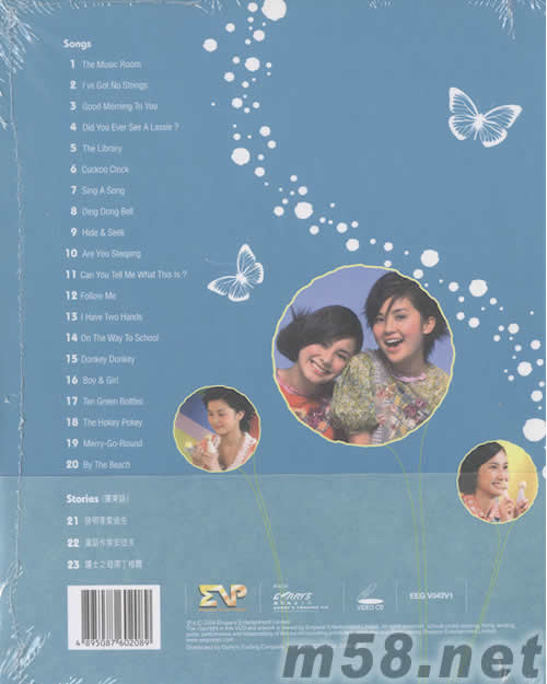 Songs 01. The Music Room 02. I've Got No Strings 03. Good Morning To You 04. Did You Ever See A Lassie? 05. The Library 06. Cuckoo Clock 07. Sing A Song 08. Ding Dong Bell 09. Hide & Seek 10. Are You Sleeping 11. Can You Tell Me What This Is? 12. Follow Me 13. I Have Two Hands 14. On The Way To School 15. Donkey Donkey 16. Boy & Girl 17. Ten Green Bottles 18. The Hokey Pokey 19. Merry-Go-Round 20. By The Beach Stories(廣東話) 21. 發(fā)明家愛迪生 22. 童話作家安徒生 23. 護士之母南丁格爾