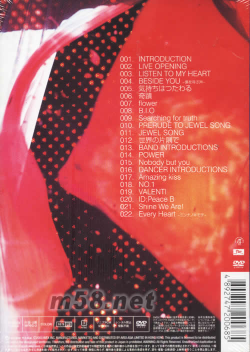 FIRST LIVE TOUR 2003 DVD(m58.net) BOA首次峰芒盡露的個人演會全記錄 收錄巡回演唱會最后一場于代代木體肓館內(nèi)舉行的精彩感動表演。 附中文歌詞。