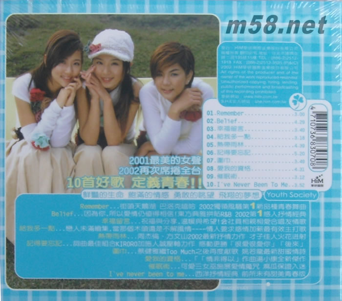 青春株式會社(超值社員福利精裝版)(m58.net) 鮮艷 飽滿 勇敢 飛翔 2001年9月才崛起的女生團體S.H.E.,由于首張專輯反應甚佳,3個小女生的演藝事業(yè)也一飛沖天,唱片公司乘勝追擊,在第一張專輯發(fā)行四個月后即推出新專輯《青春株式會社》。這張的音樂型態(tài)比第一張更進步,更請來周杰倫、湯小康、左安安、施人誠等一線音樂人為她們作詞作曲,豐富第二張專輯的音樂。
