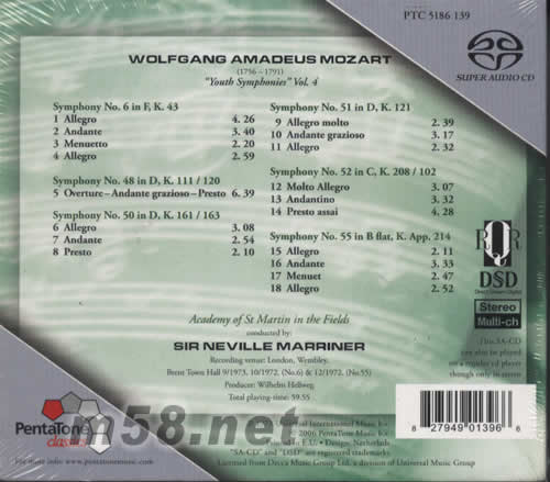 MOZART YOUTH SYMPHONIES 內(nèi)維爾•馬里納爵士 莫扎特:青年時代的交響曲(m58.net) 此SACD亦可在普通CD上播放