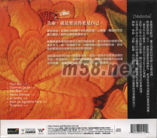 瑜咖(m58.net) 傳唱千年的古印度吟唱 喚醒生命潛在能量 活出無限喜樂 最佳潛能開發音樂 深受治療師肯定的美國靜心音樂品牌 美國深受歡迎、屢次得烯的知名靜心音樂品牌。 無論是瑜伽、SPA、按摩或靈氣音樂創作,都深受各地治療師的喜愛與推薦。 [聽見內在的聲音]這系列引自MALIMBA的專輯,汲取了世界古老的靈性智慧,轉化成最具穿透性的音樂旋律,引領我們與內在靈性的神秘覺知相遇,聽見內在的聲音。 神秘、寧靜、流動、歡動、歡舞、內在的聲音,讓你活出最原味而美麗的自己。 生命,就是要活得更是自己 虔信瑜伽,超源于大約兩午年的前的印度,以歌唱、舞蹈的方式讓凡塵世人與內在神性再度結合。 本輯將虔信瑜伽吟唱結合現代感的節奏,使古老的吟唱更加充滿生命力。每一首傳唱千年、涵養無數心靈的神圣吟唱,都使我們更能與內在神性的存在根源相應。 這些贊頌眾神的每一個聲音本身,就是一個與存在根源相應的咒語,能震動內心,直達內在深層處,喚醒生命能量中心的潛在的能量,讓我們聽見真正的自己,活出無限喜樂。