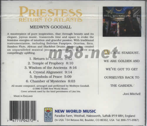 女祭司PRIESTESS RETURN TO ATLANTIS 新世紀純音樂專輯背面圖片