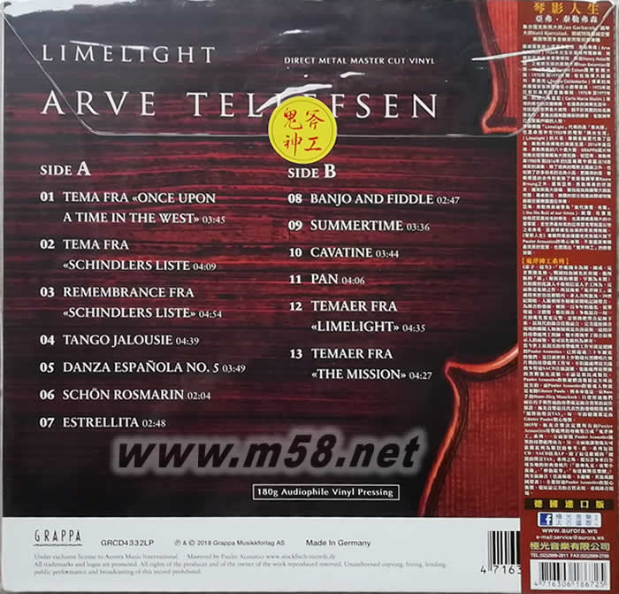 Limelight 琴影人生(LP) 鬼斧神工 180g 33RPM LP 黑膠 老虎魚專輯背面圖片