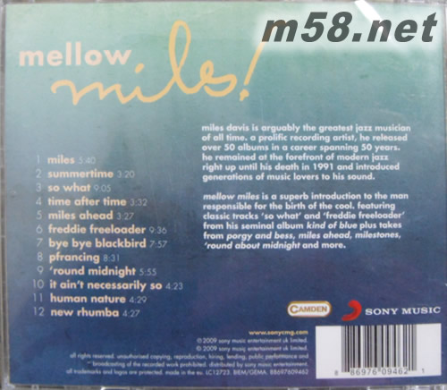 MELLOW(m58.net) 邁爾士.戴維斯(Miles Davis)無疑是爵士樂史上最偉大的音樂家之一,不但留存的錄音眾多,在超過50年的音樂歷程中,橫跨多個歷史年代與爵士樂風格。直到1991年逝世之前,戴維斯一直是當代爵士樂的先鋒人物,尤其是「酷派爵士樂」(Cool)的誕生,功不可沒。酷派爵士樂一反咆哮樂(Bebop)急躁、刺耳、不安的演奏,採較溫和冷靜的表達方式。從50年代早期萌芽,理念甚至延伸至90年代。戴維斯的【泛藍調調Kind of Blue】與【午夜時分‘Round About Midnight】都是酷派爵士樂的代表專輯之一。 專輯收錄十二首樂曲,選曲自專輯【泛藍調調】、【乞丐與蕩婦】、【午夜時分】,【里程碑】、【你被捕了】、【勇往直前】、【白雪公主與七矮人】等七張專輯。其中【里程碑】、【乞丐與蕩婦】、【泛藍調調】、【午夜時分】四張專輯更名列企鵝爵士唱片評鑑四星最高等級的推薦名單。而【泛藍調調】於1959年出版至今仍是最暢銷的爵士樂專輯,它開創了爵士樂創作與即興的新局面,具有無與倫比的經典地位,也引領無數樂迷進入爵士樂迷人的世界。 這些作品代表了戴維斯一生最大的成就,亦可謂爵士樂史上最偉大的成就。想要了解爵士樂,或一覽爵士樂大師戴維斯的驚人魅力,這張醇美精選,絕對是最佳入門捷徑。