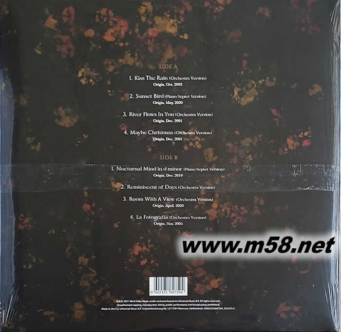 THE REWRITTEN MEMORIES 20周年 黑膠(m58.net) 李閏珉的音樂作品里,展現(xiàn)了兼融東方的抒情與西方的典雅細(xì)致的音樂風(fēng)格。他精致的演奏技巧,予人一種非凡藝術(shù)家的深刻印象。本專輯是為紀(jì)念他首張專輯發(fā)行20周年發(fā)行。新專輯收錄了他一系列最受歡迎的作品,包括:《RIVER FLOWS IN YOU》及《KISS THE RAIN》等,并采用全新的交響樂版,由鋼琴家本人進(jìn)行編曲。180克黑膠。