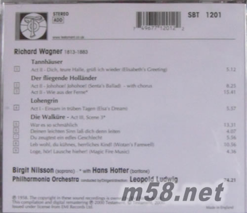1 Tannhauser: Act II: Dich, Teure Halle, Gruss Ich Wieder - Brigit Nilsson 2 Der Fliegende Hollander: Act II: Johohoe! Johohoe! - Brigit Nilsson 3 Der Fliegende Hollander: Act II: Wie Aus Der Ferne - Brigit Nilsson/Hans Hotter 4 Lohengrin: Act I: Einsam in Truben Tagen - Brigit Nilsson 5 Die Walkure: Act III, Scene 3. War Es So Schmahlich - Brigit Nilsson/Hans Hotter 6 Act III. Scene 3: Deinen Leichten Sin Lass Dich Denn Leiten - Brigit Nilsson/Hans Hotter 7 Act III. Scene 3: Du Zeugtest Ein Edles Geschlecht - Brigit Nilsson/Hans Hotter 8 Act III. Scene 3: Leb Wohl, Du Kuhnes, Herrliches Kind! - Brigit Nilsson/Hans Hotter