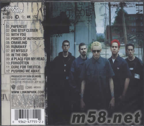 HYBRID THEORY(m58.net) 請點看產品正、背面大圖 Linkin Park 曾獲第44屆格萊美音樂獎最佳新人、最佳硬搖滾作品、最佳搖滾專輯3項提名。 Old-school式hip-hop、傳統搖滾風格以及電顫琴效果是這支另類金屬樂五人組合Linkin Park音樂的風貌。南加州根源音樂是他們的基礎,鼓手Rob Bourdon,吉他手Brad Delson和MC主唱Mike Shinoda在高中時就建立起牢固的友誼,畢業后不久,當時還是藝術院校學生的DJ—Joseph Hahn邀Shinoda組建了Linkin Park四人樂隊。歌手Chester Bennington是最后加入的成員,樂隊漸漸為人知曉。2000年秋天樂隊推出首張唱片《Hybrid Theory》,該專輯收到眾多著名制作人的提攜,融合了許多成功另類組合Deftones, the Roots, Aphex Twin以及Nine Inch Nails的優點。