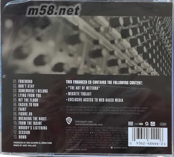 THE METEORA ENHANCED CD INCLUDES:THE FIRST SINGLE"SOMEWHERE I BELONG" A 17-MINUTE SHORT FILM"THE ART OF METEORA" PLUS EXCLUSIVE ACCESS TO WEB-BASED MEDIA.AND MORE...