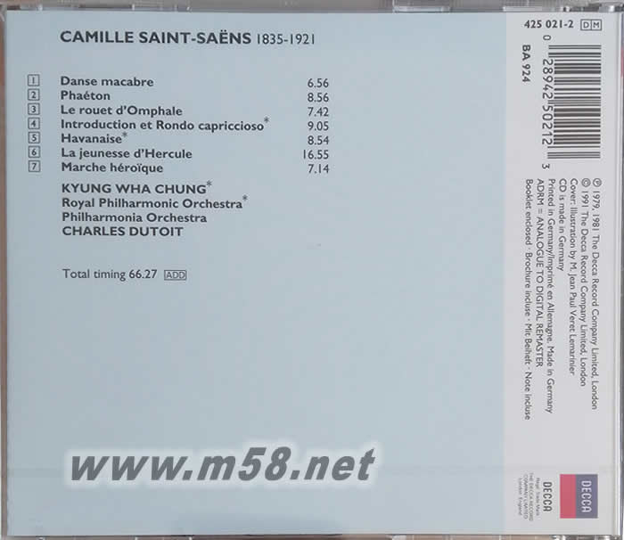 圣桑 骷髏舞曲 SAINT SAENS DANSE MACABRE(古典愛好者必備)專輯背面圖片
