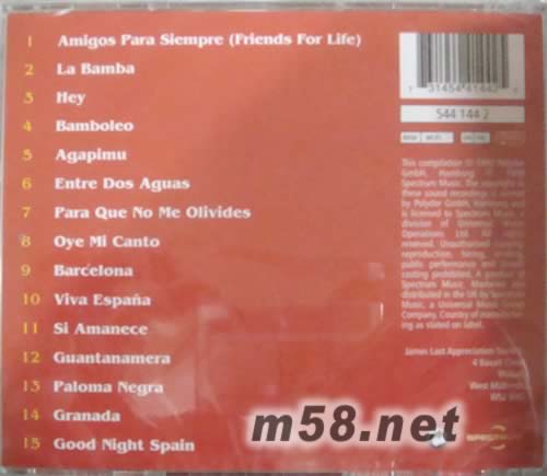 1 Amigos Para Siempre 2 La Bamba 3 Hey 4 Bamboleo 5 Agapimu 6 Entre dos Aguas 7 Para que No Me Olivides 8 Oye Mi Canto 9 Barcelona 10 Viva Espana 11 Si Amanece 12 Guantanamera 13 Paloma Negra 14 Granada 15 Good Night Spain