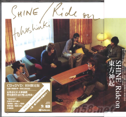 SHINE RIDE ON(CD+DVD臺(tái)灣初回限定版)(m58.net) 人氣席捲全亞洲的美聲男孩團(tuán)體東方神起,最新日文單曲「SHINE/Ride on」,融合J-POP與超酷R&B節(jié)奏,帶來(lái)濃厚秋意的雙A面單曲。「SHINE」收錄為T(mén)BS日劇30「萬(wàn)萬(wàn)歲!(暫譯)」主題曲。韓國(guó)電影「颱風(fēng)太陽(yáng)」形象歌曲。同時(shí)推出CD+DVD以及CD ONLY兩種版本。CD+DVD的DVD收錄「SHINE」的音樂(lè)錄影帶。初回限定版加收幕后花絮影像。
