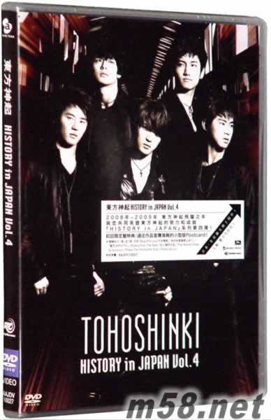 History in Japan VOL.4 香港初回版(m58.net) 中文字幕 東方神起的《HISTORY in JAPAN》系列第四彈,收入2008至09年間五子在日本的活動影像,見證他們在日本人氣不斷攀升的氣勢。收入內(nèi)容包括專輯《The Secret Code》的宣傳活動花絮、分成兩隊前往地方宣傳的密著影像,以及在Bee TV的moolog播出的影像完全版。DVD 談話內(nèi)容有中文字幕。