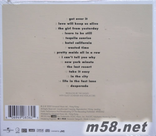 1. Get Over It 2. Love Will Keep Us Alive 3. The Girl From Yesterday 4. Learn To Be Still 5. Tequila Sunrise 6. Hotel California 7. Wasted Time 8. Pretty Maids All In A Row 9. I Can't Tell You Why 10. New York Minute 11. The Last Resort 12. Take It Easy 13. In The City 14. Life In The Fast Lane 15. Desperado
