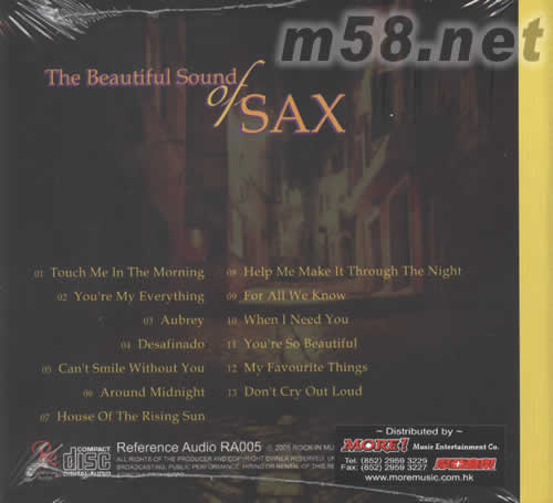 美聲色士風(fēng)THE BEAUTIFUL SOUND OF SAX(m58.net) 請點(diǎn)看產(chǎn)品正、背面大圖 2005最具音樂美感的發(fā)燒天碟 將色士風(fēng)最優(yōu)美的一面呈現(xiàn)出來,色士風(fēng)真實(shí)無倫,水花四濺,樂器演繹變化纖毫畢現(xiàn)在眼前