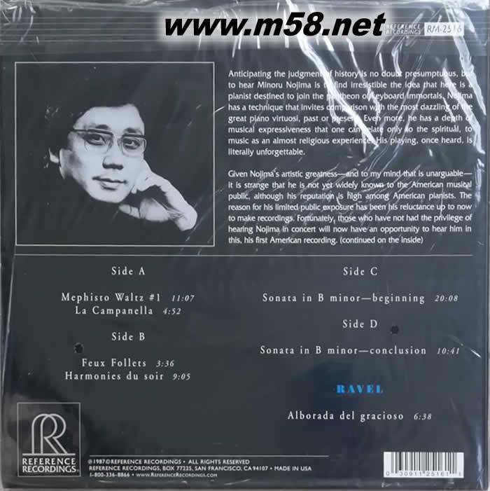 NOJIMA PLAYS LISZT 至激 野島彈奏李斯特 鋼琴作品選180g 45RPM LP 黑膠(m58.net) 世界頂尖鋼琴家野島實(shí)超級炫技之經(jīng)典作品,鋼琴錄音的示范級天碟! ★ 1991年 Stereophile 雜誌年度「拼死以求的唱片」(Records To Die For)! ★ 本專輯收錄李斯特的炫技名曲「鐘」,琴音顆粒清晰無比,歷歷在目,音色準(zhǔn)確,充滿柔美的質(zhì)感! ★ 1986 年錄音大師 Keith O. Johnson 在歐克斯納德市民廳錄製,完整真實(shí)再現(xiàn)漢堡史坦威鋼琴的絕美音質(zhì)! ★ 45 轉(zhuǎn)唱片世界首發(fā),精美折頁包裝,古典發(fā)燒樂迷切勿錯(cuò)過!
