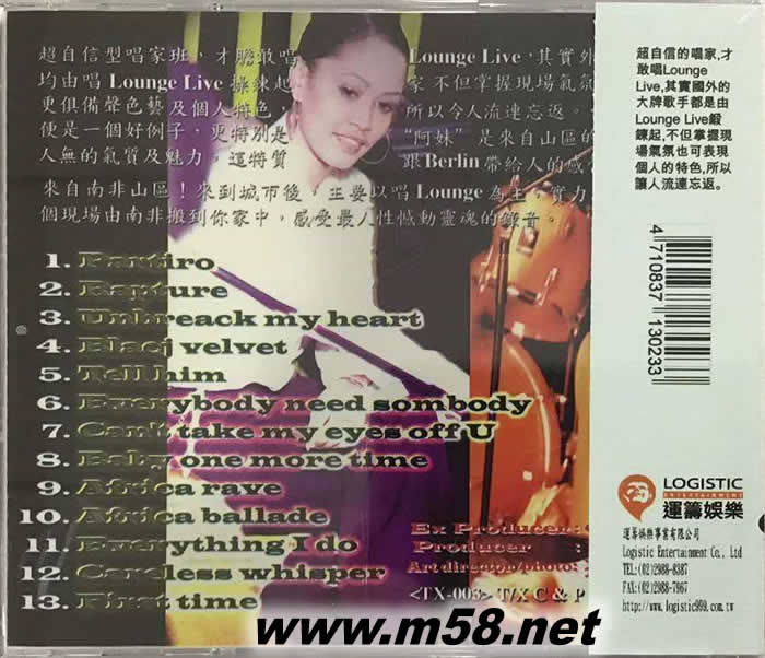 Berlin 百靈鳥 首張OUNGE LIVE 水準示范作品專輯背面圖片
