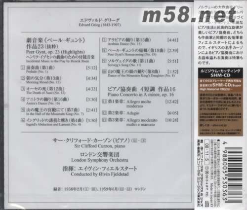 格里格 皮爾金特 鋼琴協奏曲 庫沖鋼琴(SHM-CD 日本版)(m58.net) 鋼琴:SIR CLIFFORD CURZON 指揮:OIVIN FJELDSTAD 錄音于:1958、1959年