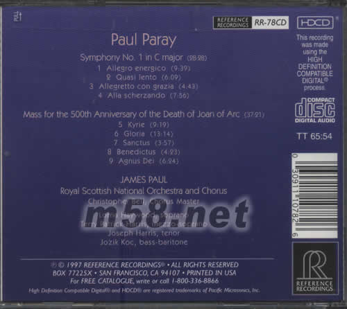 PAUL PARAY JOAN OF ARC MASS SYMPHONY NO1專輯背面圖片
