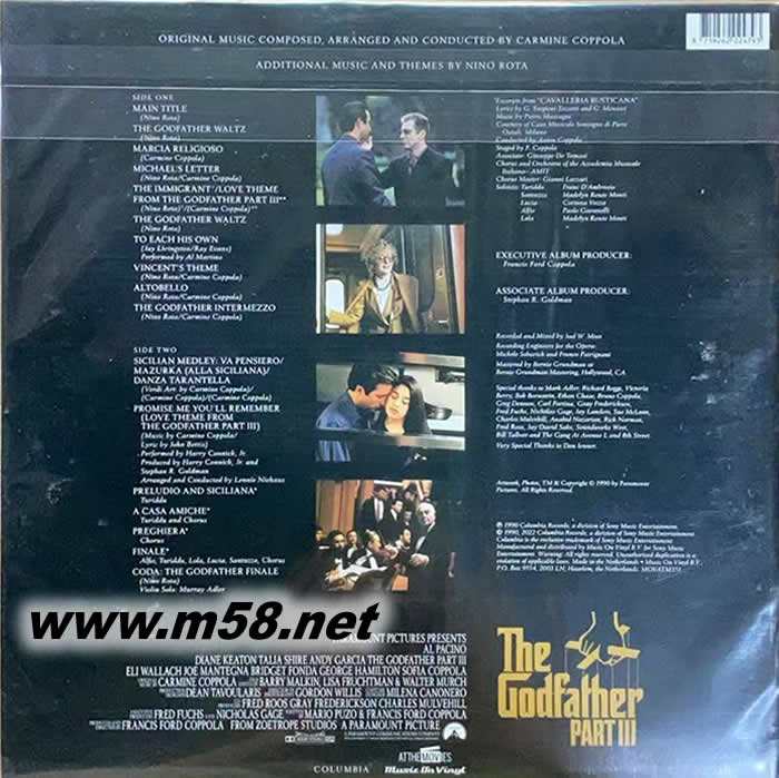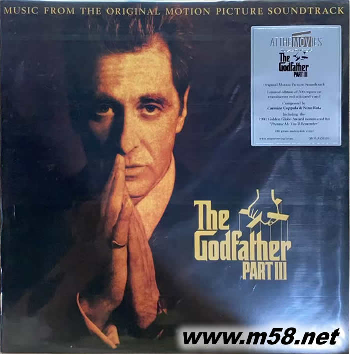 THE GODFATHER PART III 教父3電影原聲 紅膠 黑膠 限量版(m58.net) 榮獲奧斯卡獎“最佳原創歌曲”、“最佳原創配樂”,金球獎“最佳原創歌曲”等多項提名 ★《教父》三部曲配樂作曲家 Carmine Coppola 與 Nino Rota 共同譜曲 ★ 2024 年紅色彩膠版,限量 500 張,每張皆有獨立流水編號 ★ 歐陸黑膠唱片廠牌 Music On Vinyl 發行,高品質 180g 壓片