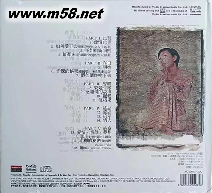 01. 此情此景 (音樂) 02. 如何愛下去 (電影“等愛的女人”主題曲) 03. 不如重新開始 04. 紅顏未老 (電影“等愛的女人”插曲) 05. 開始 (音樂) 06. 赤裸的秘密 (張國榮/林憶蓮劇場版) 07. 假如讓你吻下去 08. 要是有緣 (音樂) 09. 芝加哥的故事 10. 寵愛 11. 沒結果 12. 流逝 (音樂) 13. 暗示 14. 情人 15. 愛情.童真.夢想 (音樂) 16. 愿 (電影“晚9朝5”主題曲) 17. 赤裸的秘密 (獨唱版) Bonus Track: 18. 愿 (Instrumental Version)