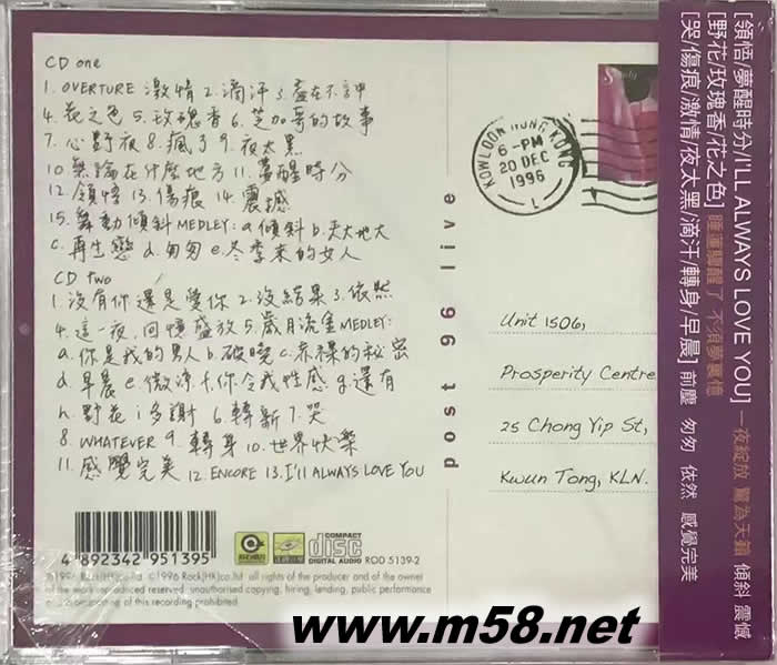 記得憶蓮盛放 LIVE (2CD) POST: SANDY LAM LIVE 96(2CD)專輯背面圖片