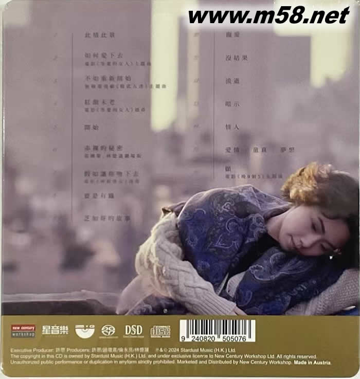 價(jià)格為估,以實(shí)到貨為準(zhǔn)! 關(guān)于她的愛情故事 (DMM+SACD)(m58.net) 超越林憶蓮近年好聽、耐聽的精彩作品:林憶蓮 - 關(guān)于她的愛情故事 DMM+SACD 關(guān)于她的愛情故事,是個(gè)童話? 是個(gè)悲劇? 還是…… 當(dāng)中多些,那些唯有她自己才知道……然而,她唱著每一個(gè)音符,每一段歌詞,像一連串有生命的心聲,像對(duì)白,歌中可有多少真實(shí)的情感……也許,歌里可以尋覓到一些蛛絲馬跡;也許,我們隨著幻想,感受到你我之間一個(gè)赤裸的秘密…… 無疑在這張精選唱片上,只得電影“等愛的女人”的主題曲、插曲如何愛下去、紅顏未老是新歌,而“如何愛下去”是近似“不如重新開始”的曲式,號(hào)召力弱了點(diǎn),但此碟上的歌曲,乃超越林憶蓮近年好聽、耐聽的精彩作品,不能小看。如林振強(qiáng)填詞的愛情故事式歌曲“芝加哥的故事”,還有電影“晚九朝五”主題曲“愿”,是憶蓮摒棄了怨婦的角色后,另一種很有希望的成熟少女祝愿歌。另外,為家駒致敬的“情人”一曲,終在林憶蓮的唱片上,這首重新演繹的作品,叫人真真正正體會(huì)到她演繹歌曲的好工架,更使人期盼憶蓮能推出張SALUTE唱片,因?yàn)橐欢ㄑ堇[得精彩。
