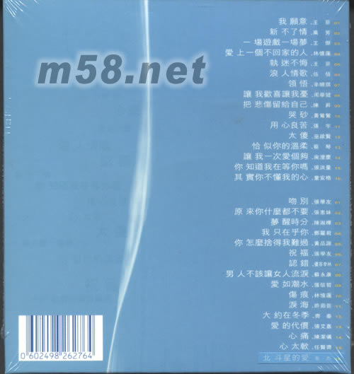 愛情海(m58.net) 全亞洲18萬樂迷參予投票,選出最受歡迎之國語金曲32首 包括︰王菲「我愿意」、蔡琴「恰似你的溫柔」、張惠妹「原來你什么都不要」、鄧麗君「我只在乎你」、齊秦「大約在冬季」等共32首作品,一一輯錄于這遍《愛情海》雙CD內! 特別介紹︰環球主辦《我型我SHOW》全國新星選拔冠軍—張杰得獎作品—「北斗星的愛」。
