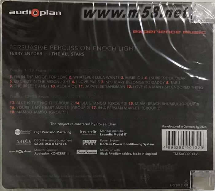 1. I’m In The Mood For Love 2. Whatever Lola Wants 3. Misirlou 4. I Surrender, Dear 5. Orchids In The Moonlight 6. I Love Paris 7. My Heart Belongs To Daddy 8. Tabu 9. The Breeze And I 10. Aloha Oe 11. Japanese Sandman 12. Love Is A Many-Splendored Thing 13. Blue Is The Night 14. Blue Tango 15. Miami Beach Rhumba 16. Yours Is My Heart Alone 17. In A Persian Market 18. Mambo Jambo