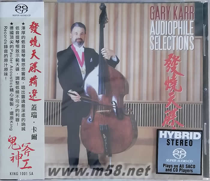 發燒天碟精選Audiophile Selections SACD(m58.net) 渾厚的低音提琴聲悠悠響起,唱出靈魂最深處的吶喊。低音提琴極致示范天碟,調整低頻不可少的利器! ★德國頂尖的Pauler Acoustics精心后製,還原King Records錄音的原汁原味! 渾厚的低音提琴聲悠悠響起,唱出靈魂最深處的吶喊。這不是「Danny Boy」嗎?這首曲子原名「Londonderry Air」(倫敦德里小調),倫敦德里與英國倫敦完全沒有關係,而是愛爾蘭的一處地名,后來被詞曲創作者Frederic Weatherly填上「丹尼男孩」的歌詞,而成為愛爾蘭最具代表性的音樂,也是發燒友最愛的低音提琴曲目之一。King Records在專輯第一首就選了這首曲子,確實非常能代表蓋瑞.卡爾(Gary Karr)的精湛琴藝。事實上,這張專輯收錄的13首曲目涵括蓋瑞.卡爾在King Records所留下的錄音之精華,包括「圣誕夜」、「向星星許愿」、阿比諾尼的「慢板」、蓋西文的「夏日時光」、小提琴名曲改編的「歡樂的迴旋曲」、巴哈的「G弦之歌」、「小步舞曲」,以及「耶穌,世人仰望的喜悅」等經典詮釋,所以稱為「發燒天碟精選」。 1942年出生於美國洛杉磯的蓋瑞.卡爾不但是音樂史上第一位以低音提琴為獨奏樂器的音樂家,更被媒體譽為「全世界最杰出的低音提琴獨奏家」,稱他為「低音提琴之神」一點都不為過。蓋瑞.卡爾之所以廣受推崇,除了精湛的琴藝之外,他所演奏的阿瑪悌(Amati)名琴更是讓音響迷熱愛的主因。這把名琴是由俄裔美籍的大指揮家庫塞維斯基(Serge Koussevitzky, 1874-1951)遺孀所贈與,為了表達感恩之心,蓋瑞.卡爾還特別成立基金會,提供名琴給年輕音樂家使用。專輯中擔任鋼琴與管風琴伴奏的是老搭檔Harmon Lewis,兩人完美的默契讓音樂充滿迷人的魅力,King Records優異的錄音技術更在這張專輯中一覽無遺。極光音樂特別取得King Records的原始母帶,請德國的Pauler Acoustics重新母帶處理,讓這份經典的錄音重現光輝。