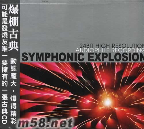Symphonic Explosion 爆棚古典(m58.net) 爆棚古典 動(dòng)態(tài)龐大,爆得精彩 可能是發(fā)燒友唯一要購(gòu)買的一張古典CD 這是以發(fā)燒友為對(duì)象的一張古典精選,所挑選曲目以動(dòng)態(tài)龐大,爆得精彩的交響樂為主,其中包括了「畫展」,「荒山之夜」,「輕騎兵序曲」,「新世界交響曲」,「貝多芬第五交響曲」亦加插了低頻王Toccata And Fugue in D Minor,超過一個(gè)小時(shí)的音樂假如全都是爆到七彩,肯定令人頭昏腦脹,這張CD巧妙地在其中加入多首非古典迷 也會(huì)十分熟悉的抒情樂章,令到全張CD聽來更有娛樂性,對(duì)於發(fā)燒友,這可能是最爆得最富娛樂性的古典CD