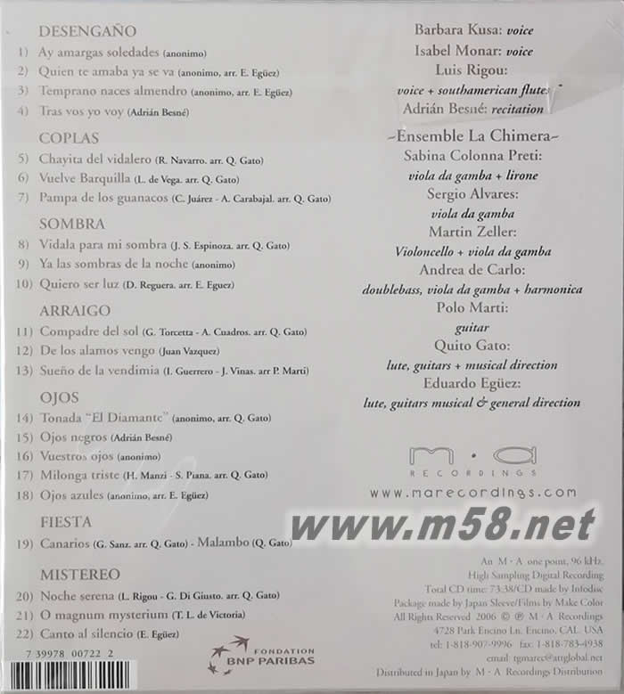 1. Ay Amargas Soledades 2. Quien Te Amaba Ya Se Va 3. Temprano Naces Almendro 4. Tras Vas Yo Voy 5. Chayita Del Vidalero 6. Vuelve Barquilla 7. Pampa De Los Guanacos 8. Vidala Para Mis Sombra 9. Ya Las Sombras De La Noche 10. Quiero Ser Luz 11. Compadre Del Sol 12. De Los Alamos Vengo 13. Sueno De La Vendimia 14. Tonada 'El Dimante' 15. Ojos Negros 16. Vuestros Ojos 17. Milonga Triste 18. Ojos Azules 19. Canarios 20. Noche Serena 21. O Magnum Mysterium 22. Canto Al Silencio