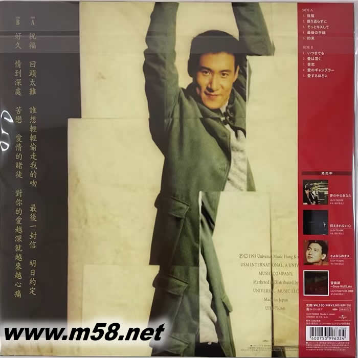 SIDE A 1.祝福 2.回頭太難 3.誰想輕輕偷走我的吻 4.最后一封信 5.明日約定 [OT: 天變地變情不變] SIDE B 1.好久 2.情到深處[OT: 旅姿六人眾] 3.苦戀 4.愛情的賭徒 5.對(duì)你的愛越深就越來越心痛