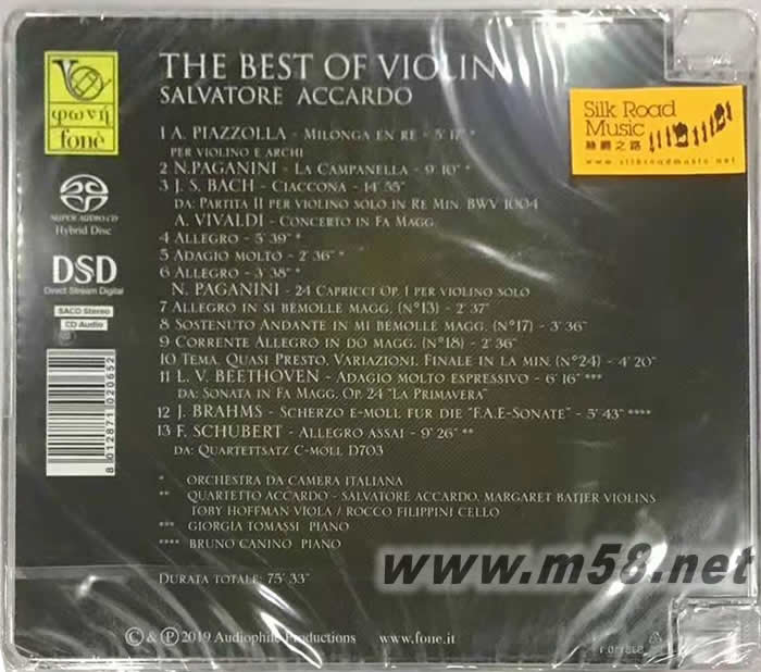THE BEST OF VIOLIN 阿卡多 最優秀的小提琴 SACD(m58.net) 1. 意大利小提琴一代宗師阿卡多(Salvatore Accardo)採用多個最珍貴、極富歷史的絕世名琴演奏多首他的鐘愛名曲,全是他的顛峰之作。