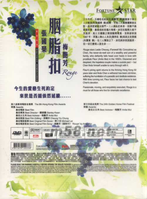 價(jià)格為估,以實(shí)到貨為準(zhǔn)! 胭脂扣(精裝版)(m58.net) 導(dǎo)演:關(guān)錦鵬 原著:李碧華 收錄關(guān)錦鵬訪問 INCLUDES STANLEY KWAN INTERVIEW 附送梅艷芳*張國(guó)榮影*畫*本 INCLUDES ANITA MUI LESLIE CHEUNG PICTORIALS 語言:粵語杜比5.1環(huán)回音效/粵語DTS/普通話杜比5.1環(huán)回音效/原裝粵語 字幕:繁體中文/簡(jiǎn)體中文/英文 片長(zhǎng):96分鐘 年份:1988年