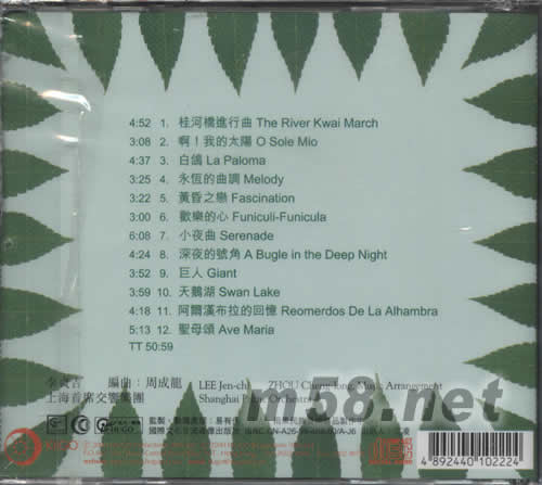 1、桂河橋進行曲 2、啊!我的太陽 3、白鴿 4、永恒的曲調 5、黃昏之戀 6、歡樂的心 7、小夜曲 8、深夜的號角 9、巨人 10、天鵝湖 11、阿爾漢布拉的回憶 12、圣母頌