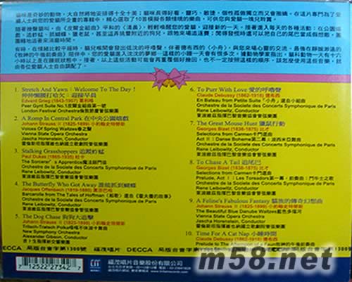 價(jià)格為估,以實(shí)到貨為準(zhǔn)! 古典貓 - 喵瞇古典(m58.net) 隨著幾聲貓叫,由《皮爾金組曲》平和的〈清晨〉,輕輕喚醒您的愛貓,迎接新的一天。接著進(jìn)入每天的各種活動(dòng):在公園嬉戲、追蚱蜢、抓蝴蝶、獵老鼠,甚至逗弄挑釁附近的狗兒,跟牠來場(chǎng)追逐賽;閒得發(fā)慌時(shí)還可以把自己的尾巴當(dāng)成假想敵,團(tuán)團(tuán)轉(zhuǎn)地追著來消磨時(shí)間。 有時(shí),在情緒比較平緩時(shí),貓兒喉間會(huì)發(fā)出低沈的呼嚕聲,伴著德布西的〈小舟〉,與您來場(chǎng)心靈的交流。最后在靜謐渺遠(yuǎn)的《牧神的午后前奏曲》陪伴中,您的愛貓進(jìn)入沈沈的夢(mèng)鄉(xiāng)─這樣的小睡一天會(huì)有很多次,據(jù)動(dòng)物學(xué)家指出,貓科動(dòng)物一天有十六小時(shí)以上是在睡眠狀態(tài)中。接著,以上這些活動(dòng)可能會(huì)再重覆個(gè)好幾回,也不一定按照這樣的順序,該怎么使用這些音樂,就由各位愛貓人士自由調(diào)配了。 另外專輯隨機(jī)附贈(zèng)美國原裝進(jìn)口貓薄荷(給您的愛貓用),就試試您的手氣吧!