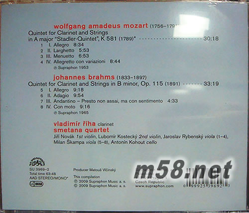 莫扎特勃拉姆斯單簧管五重奏 弗拉基米爾單簧管 斯梅塔娜四重奏專輯背面圖片