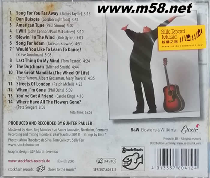 民歌天王MORE PEARLS 更多的珍珠(m58.net) 民歌天王DAVID ROTH演繹多首家傳戶曉名曲,令你回味人生。殿堂級錄音大師GUNTER PAULER再創發燒錄音經典的新高峰! 推薦歌曲:BLOWING IN THE WIND,STREET OF LONDON,WHERE HAVE ALL THE FLOWERS GONE YOU‘VE GOT A FRIEND