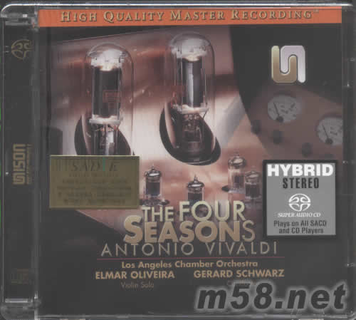 四季THE FOUR SEASONS 小提琴協(xié)奏曲 SACD(m58.net) 這個天樂的《維瓦爾第:四季》(Vivaldi: The Four Seasons)版本是迄今為止錄音最具現(xiàn)代美學風范的《四季》版本。 專輯所采用的錄音由著名的洛杉磯室內(nèi)樂團演奏、Gerard Schwarz指揮,擔任小提琴獨奏的是當年柴可夫斯基小提琴國際比賽金獎獲得者Elmar Oliveira。 杰勒德?施瓦茨,美國指揮家,1947年8月19日出生于新澤西Weehawken,1972年畢業(yè)于朱利亞德音樂學院。1985年起擔任西雅圖交響樂團音樂總監(jiān)。在他的指揮下,樂團錄制了許多唱片,并在1998年擁有了新的演出基地貝納羅亞音樂廳(Benaroya Hall)。他還在舊金山歌劇院、基洛夫歌劇院(Kirov Opera)、西雅圖歌劇院指揮過。 Gerard Schwarz指揮過許多知名樂團,如費城交響樂團、捷克愛樂樂團、倫敦交響樂團等,并曾獲得過哥倫比亞大學的Ditson Conductor's Award、朱利亞德音樂學院的榮譽博士等。1994年當選為《音樂美國》(Musical America)評選的年度指揮家。