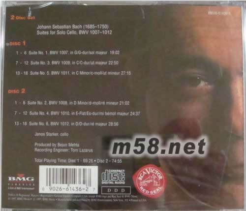 巴赫 大提琴組曲BACH SUITES FOR SOLO CELLO(m58.net) 二十世紀(jì)最偉大的大提琴演奏家史塔克(Janos Starker)1992年RCA錄音名版 ☆舉世無雙的無伴奏樂曲,大提琴演奏的試金石,無數(shù)大師爭相詮釋的紀(jì)念碑式作品 ☆二十世紀(jì)最偉大的大提琴演奏家史塔克凝聚64年音樂造詣的巔峰之作