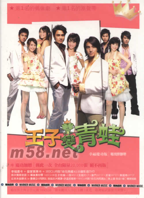 價(jià)格為估,以實(shí)到貨為準(zhǔn)! 王子變青蛙電視原聲帶 幸福慶功版(CD+DVD)(m58.net) ★第一名的偶像劇 ★第一名的原聲帶 王子變青蛙電視原聲帶 幸福慶功版 好禮加贈(zèng)上市!! 僅此一次 全臺(tái)限量20,000張 絕不再版 一次擁有 超值慶功獻(xiàn)禮: 3張幸福書卡 +皇家賓果卡 +183CLUB與7朵花典藏35分鐘影音DVD