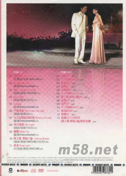 01. 珍藏CD: 迷魂計(jì) Enticing Trick (主題曲/演唱:183CLUB) 02. Wonderful Day (配樂/Instrumental) 03. 魔法 Magical Smile (插曲/演唱:183CLUB) 04. Bye! Boy (插曲/演唱:7朵花) 05. Latina (配樂/Instrumental) 06. 不夠勇敢 Not brave enough (插曲/演唱:VJ) 1 07. 失去記憶最初的愛 Memory Puzzle (配樂/Instrumental) 08. 我只想要 All I want (插曲/演唱:7朵花) 09. 醒醒 Wake Up (配樂/Instrumental) 10. 閉上眼 默念3遍 Call my Name (插曲/演唱:183CLUB+7朵花) 11. 真愛 Pure Love (片尾曲/演唱:183CLUB) 12. 典藏DVD: 專輯CF 13. 王子特輯PART1 14. 真愛MV 15. 預(yù)購(gòu)CF 16. 美國(guó)棉CF 17. 王子特輯PART2 18. 閉上眼 默念3遍MV 19. 波蜜CF 20. 豪門CF 21. 王子特輯PART3 22. 迷魂計(jì)MV 23. 專輯CF 24. 喬杰立 六月評(píng)比:閉上眼 默念3遍 爆笑短劇