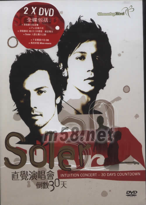直覺演唱會 -倒數(shù)30天(m58.net) 全碟包括:演唱會全程直擊+7×記錄片段+演唱會前30天工作歷程 絕密曝光+Soler入廚比賽大公開+7首精選卡拉OK+風的終點Mini-movie Soler首張演唱會DVD,完美輯錄Soler Live Performance的澎湃力量,更特別收錄了演唱會前30天工作歷程及Soler入廚比賽的片段。 讓欣賞Soler的樂迷除了可安在家中享受他們的演出外,亦能一窺他們的工作及生活態(tài)度。