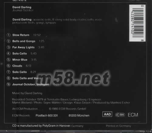大衛(wèi)達伶 十月日志 David Darling / Journal October 大提琴獨奏專輯背面圖片