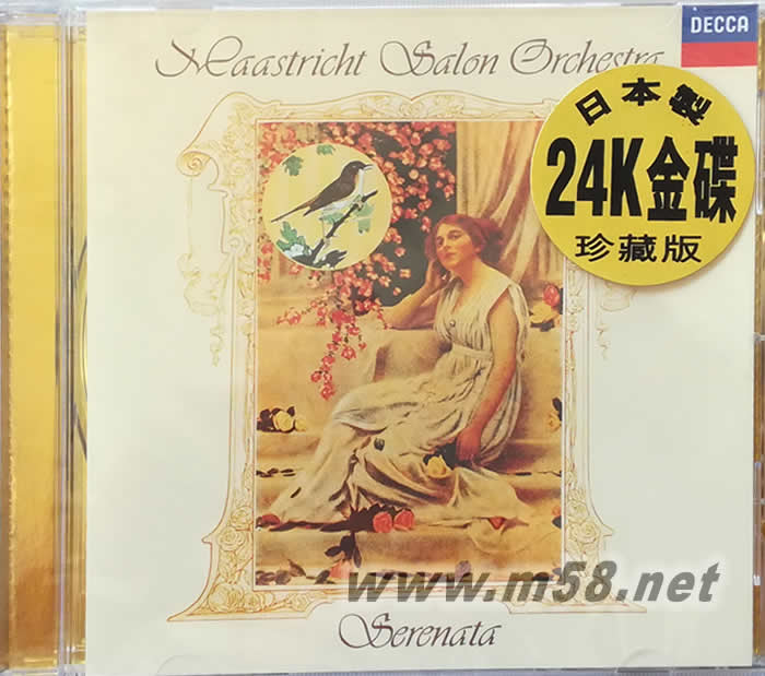 SERENATA 夜鶯小夜曲 24K金CD(日本版)(古典愛好者必備)(m58.net) 這是1984年出版的老碟, 非常出色,曲子很美, 典雅悠閑, 清新可人.夜鶯的叫聲是很美的,映著水聲,百聽不厭,聲音亮不亮可以是檢驗音響器材的試金石。